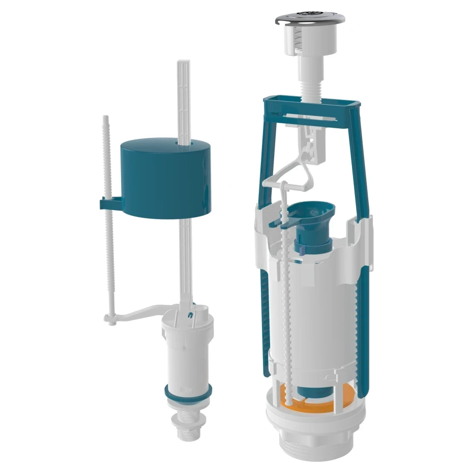 NOVA Арматура для змивного бачка універсальна з клапаном бічного подавання (4126) Ідеально підходить під всі моделі туалетних бачків, як отціональних, так і іноземних виробників. Конструктивні властивості: 1. Корпус виготовлений з високоякісного первинного поліпропилену на сучасному обладнанні. 2. Крихітна кнопка з можливістю бічної регулювання та регулювання за висотою. 3. Качочальна силіконова мембрана забезпечує надійність загону води в туалетному бачку. 4. Корпус арматури регулюється висотою, а також автоматичним переливом. Основні характеристики: • Тип: Зливна однорівнева арматура для бачка. • Призначення: Для унітазу. • З' єднання: 1/2" • Ширина: 10 см. • Підвод води: з боку. • Матеріал: Пластик. Додатково: Висота 320-380 мм. Мембрана силіконова. Діаметр з' єднання: 2" 1 кнопка. Регулювання по висоті до 60 мм. Бічне регулювання кнопки до 15 мм. Клапан нижньої подачі води, діаметр 1/2" Комплектація: - Клапан. - Пориста прокладка. - Закріплення бачка до туалету з нерж. та з гумовими прокладками.