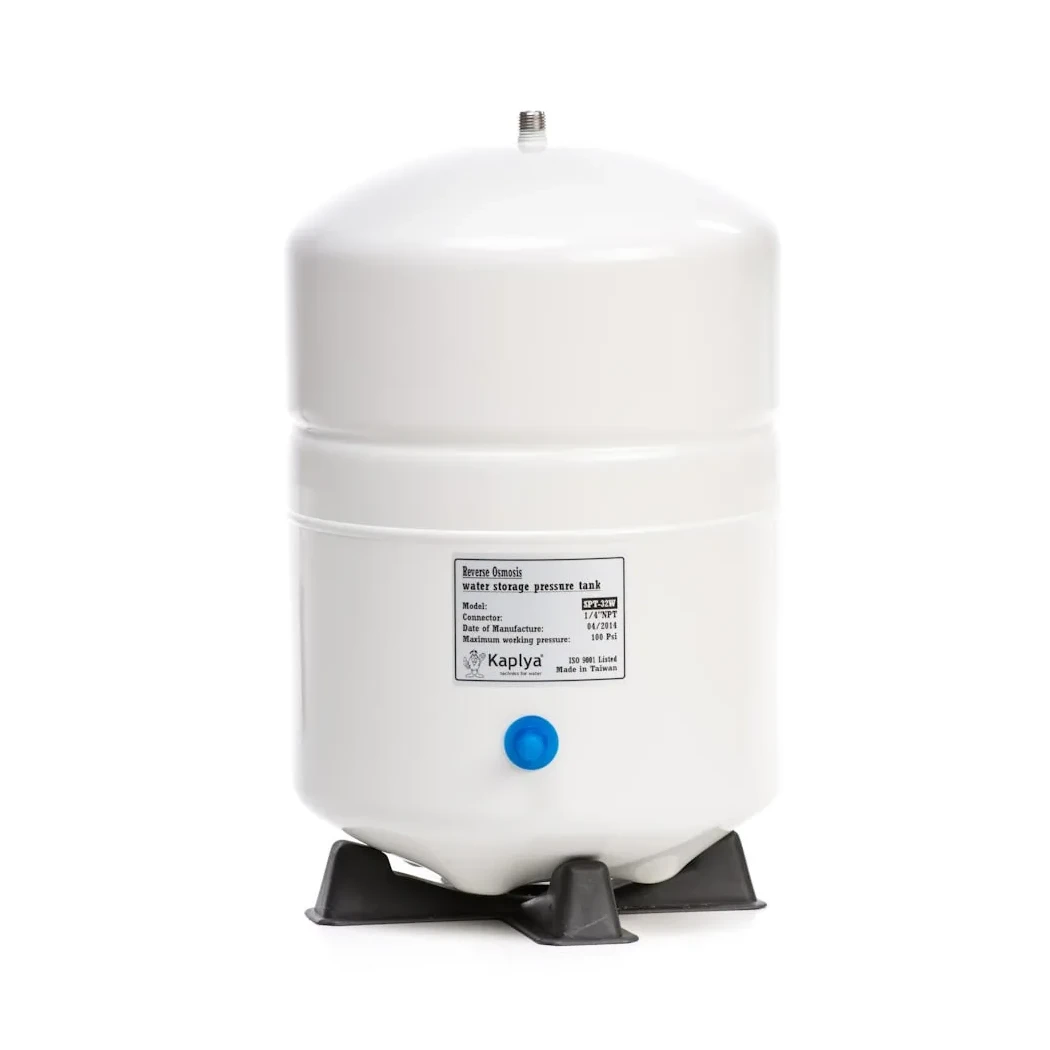 SPT-32W – металевий бак для систем очищення води (найчастіше застосовується з фільтрами зворотного осмосу). Зовнішнє різьблення для підключення – 0.25 дюйми. Призначений для побутового використання з невеликим споживанням питної води. Об`єм бака 8 л, розміри – 348х229 мм. Колір білий. У комплект входить пластикова основа. Країна-виробник – Тайвань. Гарантія – 12 місяців.