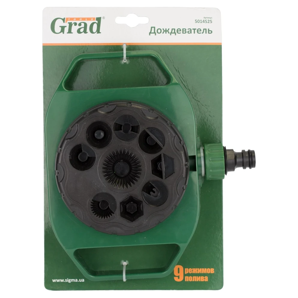 Дощувач 9 режимів (ABS) GRAD (5014525) призначений для поливу присадибних ділянок, городів, клумб, газонів і т.д. Дуже простий у використанні не вимагає складання і налаштування гарантують рівномірне і м'яке зрошення без калюж.