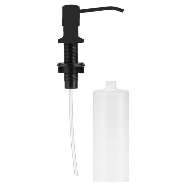Виготовлений з високоякісної нержавіючої сталі Міцний поліетиленовий контейнер Щоб додати рідину, просто зніміть кришку дозатора Можна встановити на 38 мм кухонну стільницю Надзвичайно міцний, не менше 50 000 циклів Чорний колір