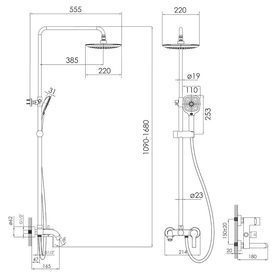 Душова система IMPRESE KUCERA — це повноцінний комплект, що поєднує в собі змішувач, верхній душ, ручну лійку та інші необхідні компоненти для створення комфортної та сучасної зони душу. Вона вирізняється не лише високою якістю матеріалів, але й продуманим дизайном та функціональністю, що робить її чудовим вибором для будь-якої ванної кімнати.