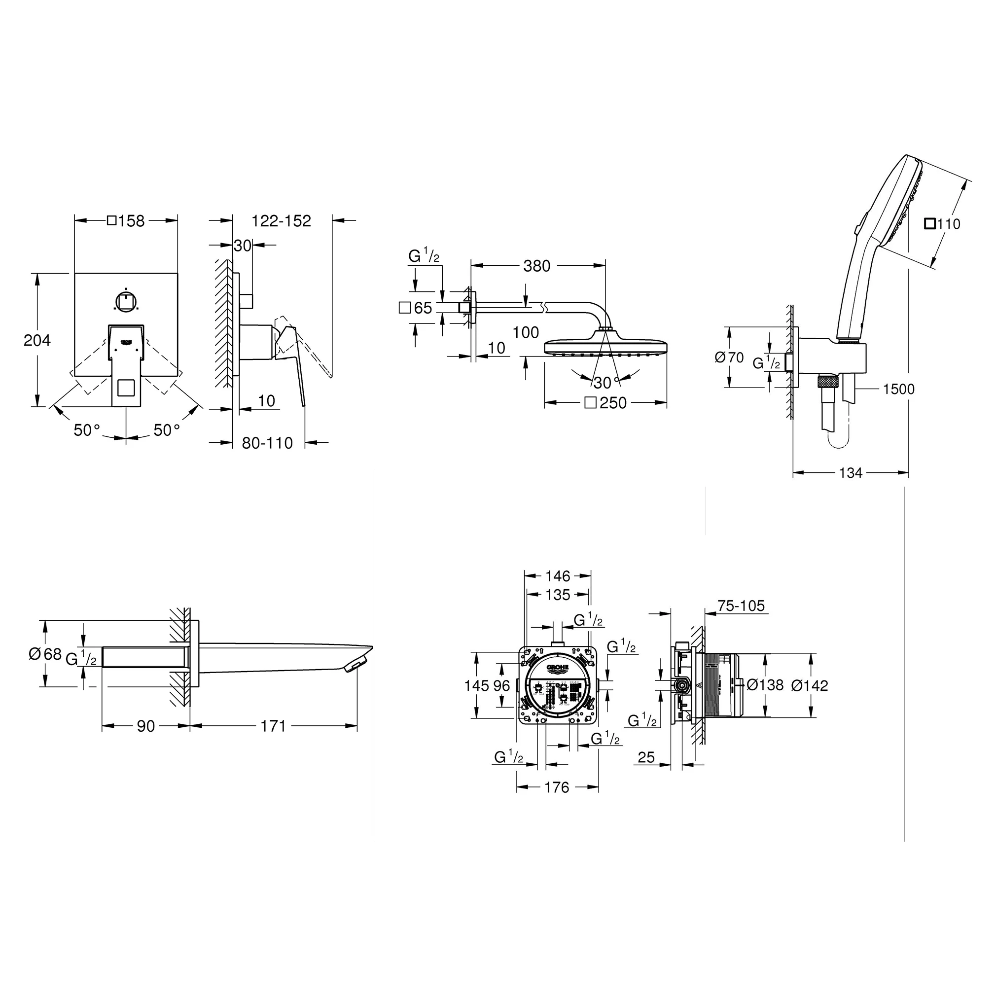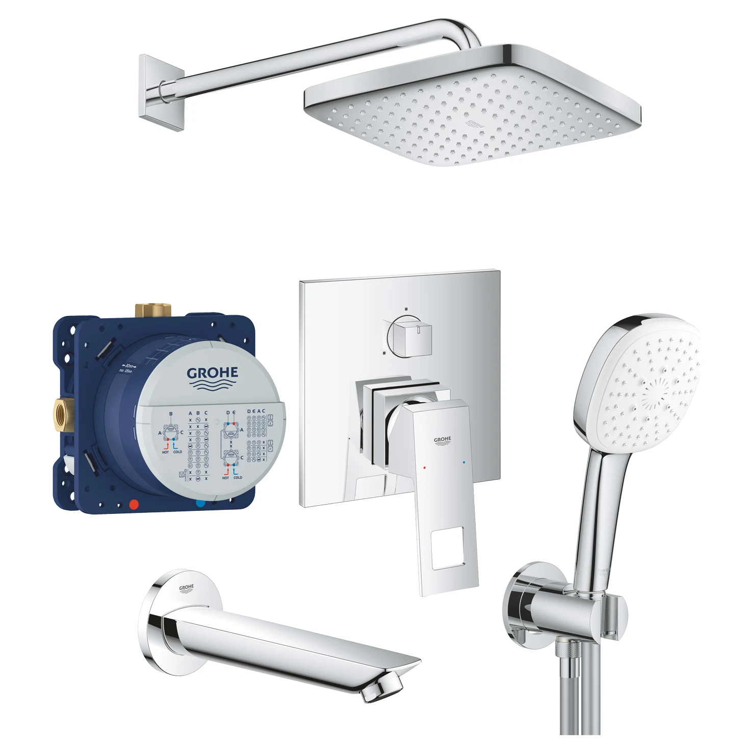 Душовий комплект GROHE Eurocube 250 прихованого монтажу для ванни – це втілення ультрасучасного дизайну та передових технологій, розроблене для створення вишуканого та функціонального простору у вашій ванній кімнаті. Цей комплект дозволяє насолоджуватися розкішними водними процедурами, зберігаючи при цьому мінімалістичний та елегантний вигляд.