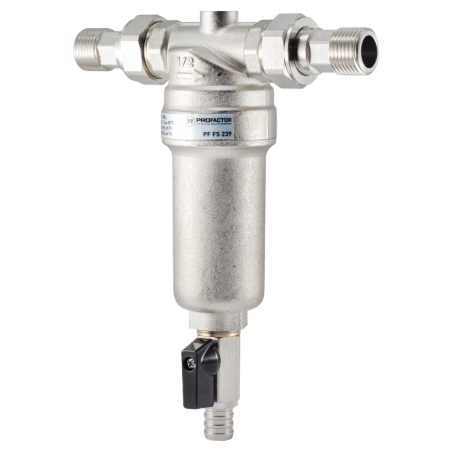 Фільтр промивний PROFACTOR 3/4" латунний для гарячої води - це надійний та ефективний пристрій, призначений для очищення води від механічних домішок (піску, іржі, окалини) в системах гарячого водопостачання. Він захищає сантехнічне обладнання та побутову техніку від передчасного зносу та поломок, спричинених забрудненнями.
