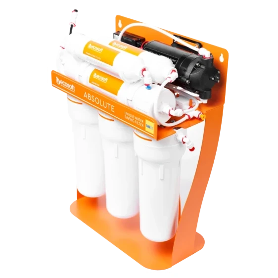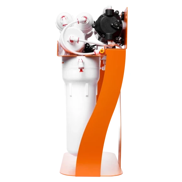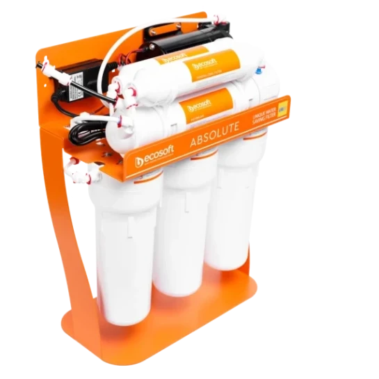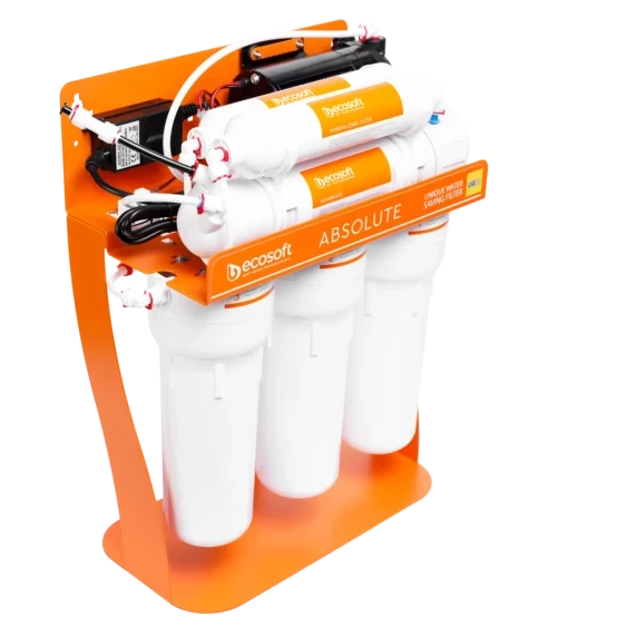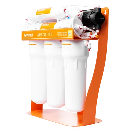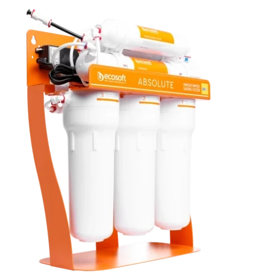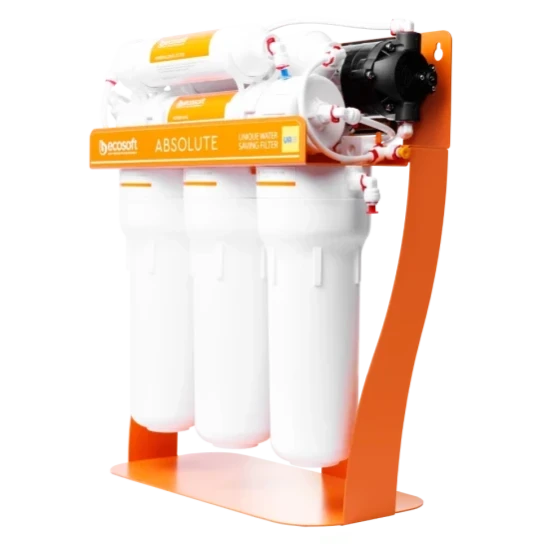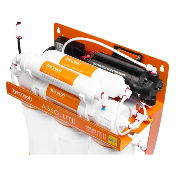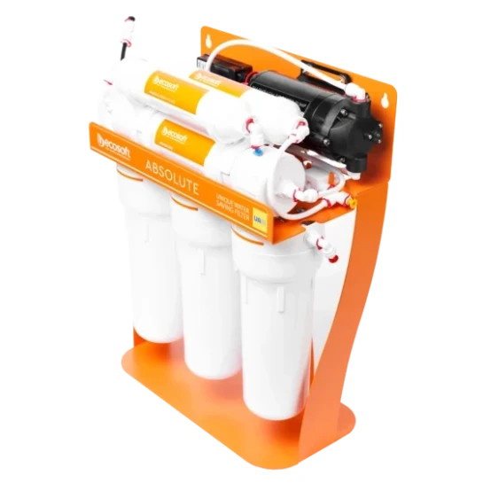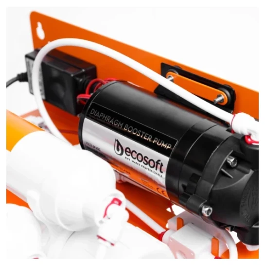 Фільтр зворотного осмосу Ecosoft P’URE AquaCalcium з помпою на станині — це: ✓ мембрана Ecosoft — очищає воду від 99,8% домішок, а також віруси та бактерії ✓ 6 етапів очищення, включно зі стадією збагачення води кальцієм ✓ до 280 літрів питної води на день ✓ накопичувальний бак корисним об'ємом 7 літрів