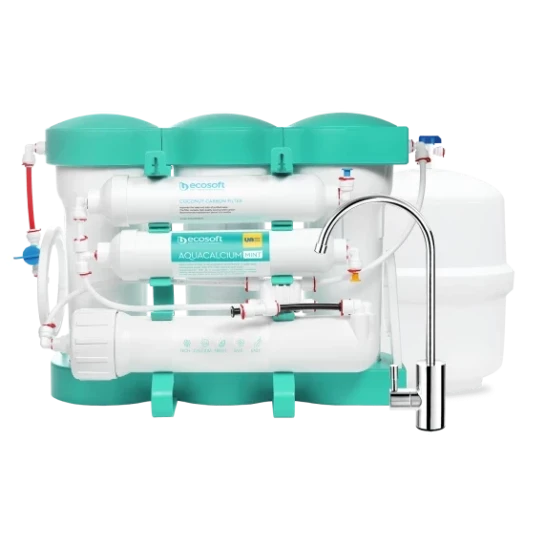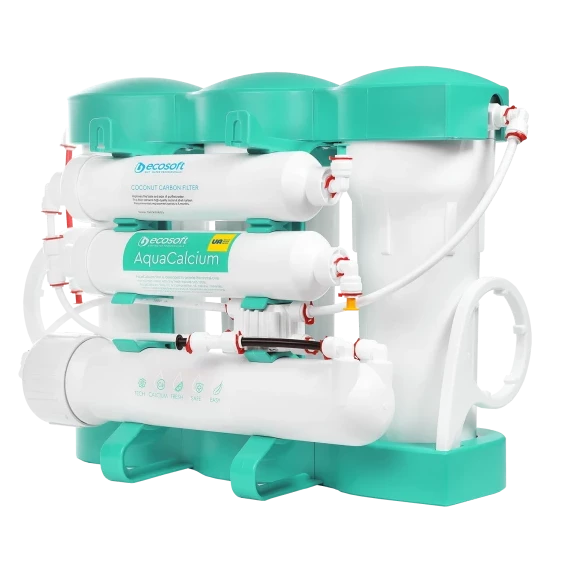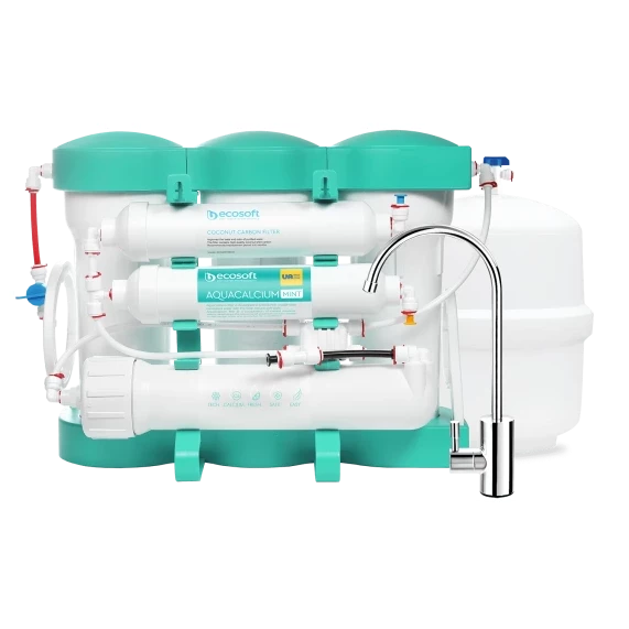 Фільтр зворотного осмосу Ecosoft P’URE AquaCalcium на станині — це: ✓ мембрана Ecosoft — очищає воду від 99,8% забруднень, бактерій та вірусів ✓ 6 етапів очищення, включно зі стадією збагачення води кальцієм ✓ зелена технологія економії води AquaGreen ✓ до 280 літрів питної води на день ✓ накопичувальний бак корисним об'ємом 7 літрів ✓ надійна станина для стійкості фільтру