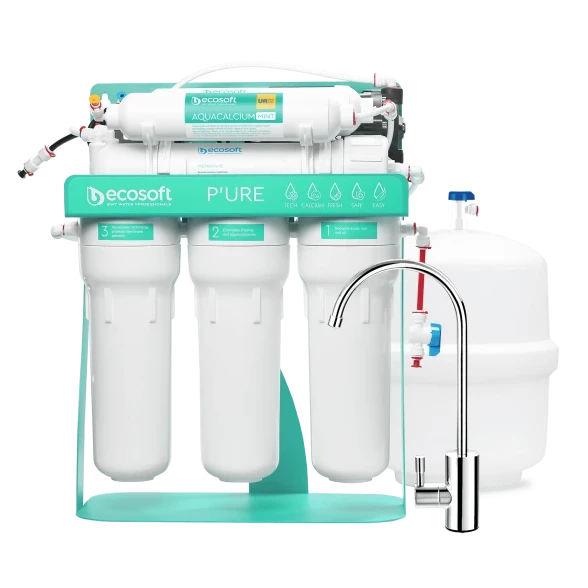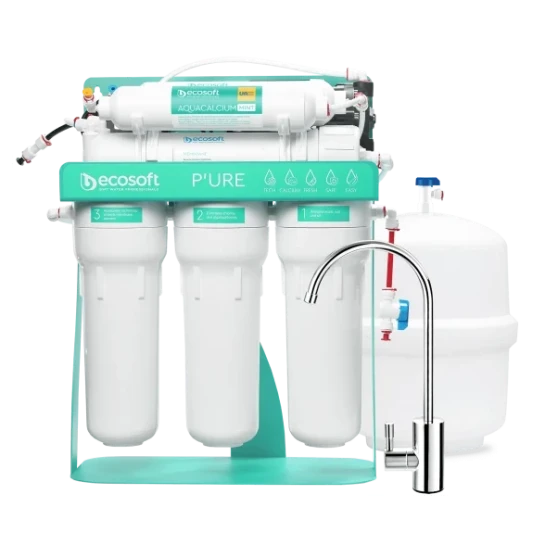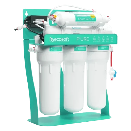 Фільтр зворотного осмосу Ecosoft P’URE AquaCalcium з помпою на станині — це: ✓ мембрана Ecosoft — очищає воду від 99,8% домішок, а також віруси та бактерії ✓ 6 етапів очищення, включно зі стадією збагачення води кальцієм ✓ зелена технологія економії води AquaGreen ✓ до 280 літрів питної води на день ✓ накопичувальний бак корисним об'ємом 7 літрів ✓ надійна станина для стійкості фільтру ✓ накопичувальний бак корисним об'ємом 7 літрів ✓ підкачуюча помпа для будинків з низьким напором води в системі