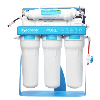 Технологія зворотного осмосу дозволяє видалити з води 99,8% забруднень, таких як фтор, хлор, свинець, органічні сполуки, такі як хлораміни, перфтороктанова кислота (PFOA) і перфтороктансульфонова кислота (PFOS), а також бактерії та віруси. Це найбільш довершений спосіб очищення питної води в домашніх умовах. Головний компонент фільтра — мембрана зворотного осмосу Ecosoft. Вона очищає воду на молекулярному рівні, затримуючи всі різновиди забруднень, навіть віруси та бактерії. Мембрана зворотного осмосу — це напівпроникна полімерна тканина. ЇЇ пори на 200 разів менші розміру вірусів, тому мембранне очищення гарантує біологічний захист. Очищену таким методом воду можна пити без кип'ятіння.