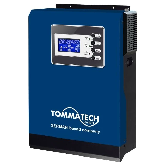 Безперебійник з правильною синусоїдою TOMMATECH NEW 1K-12, 1000W від надійного бренду з Німеччини — це гібридний інверторний багатофункціональний прилад. ДБЖ/інвертор допоможе забезпечити повну енергонезалежність у приватному будинку або виробничих та офісних будівлях. Виріб виконує: функцію запуску генератора й інвертора, надає підтримку безперебійного живлення. На передній панелі є зручний РК-дисплеєм з відображенням основних параметрів роботи. TOMMATECH NEW 1K-12, 1000 Вт сумісний з різними джерелами змінного електоструму.
