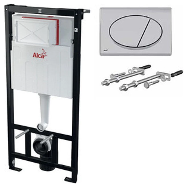 Інсталяційна система для унитазу з білою кнопокою ALCA PLAST (AM101/1120+М70) Містить дозатор пігулок для унітазу Регульовані висувні ніжки в діапазоні 0–200 мм з гальмівною системою Позначення центрування та нівеляції Рухомий тримач для коліщатого коліна, що встановлюється у восьми положеннях на відстані 0–93 мм Кутовий вентиль з можливістю підключення до системи Конструкція рами дозволяє проводити монтаж до профілю для гіпсокартону, призначеного для цих цілей, або до несучої стіни. Встановлена система закривається гіпсокартонним листом і не потребує додаткових кріпильних елементів. Характеристики: Призначення: Для унітаза Висота, мм: 1120 Ширина, мм: 510 Глибина, мм: 125 Особливості: Вільностояча