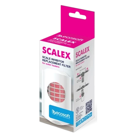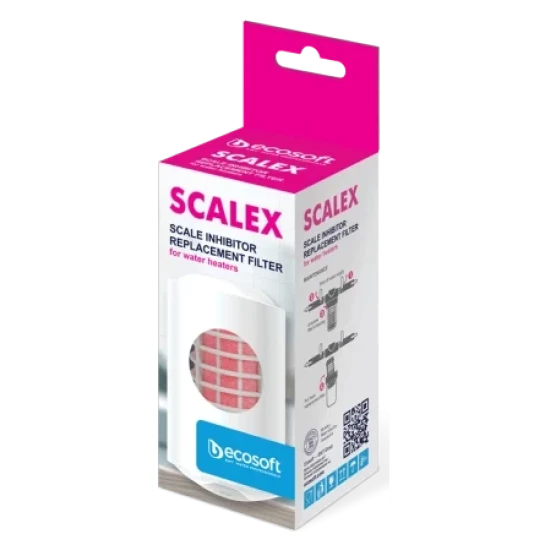 Картридж призначений для заміни у фільтрі від накипу Ecosoft Scalex для бойлерів та котлів. Всередині картриджа інноваційний фільтрувальний матеріал, розроблений українськими вченими. Унікальна технологія комплексно діє на солі Твердість, не дає їм накопичуватися на нагрівальних елементах котлів та бойлерів. Завдяки тому, що фільтр не містить фосфатів, він гіпоалергенний для людини та абсолютно безпечний для навколишнього середовища. На нейлоновій сітці картриджа затримується пісок, мул, іржа, та інші механічні домішки розміром до 100 мкм. Це забезпечує додатковий захист бойлера та котла.
