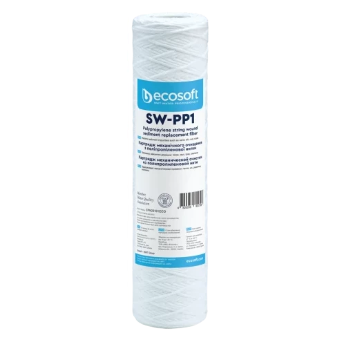 Картридж Ecosoft 2,5"x10" 1 мкм з поліпропіленової нитки підходить для очищення води від іржі, піску, мулу. Забезпечує захист сантехніки та трубопроводу від пошкоджень.
