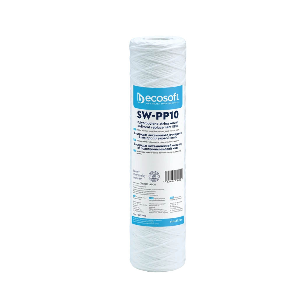 Картридж Ecosoft 2,5"x10" 10 мкм з поліпропіленової нитки підходить для очищення води від іржі, піску, мулу. Забезпечує захист сантехніки та трубопроводу від пошкоджень.