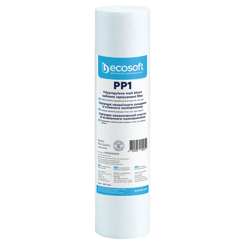 Модель зі спіненого поліпропілену CPV25101ECO 2,5"х10" 1 мкм від Ecosoft використовується для механічного доочищення води від таких домішок як пісок, мул, частинки іржі та інше. Дозволяє захистити труби від утворення накипу.