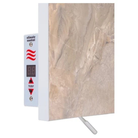 Економна інфрачервона панель ТСМ-РА 1000 – це велика потужність в поєднанні з простотою управління температурою приміщення. Обігрівач Теплокерамік ТСМ-RA 1000 – модель з такими ж розмірами, як і ТСМ 800 – 1200х600 мм, але при цьому більш потужністю – 1000 Вт і з вмонтованим замість кнопки вкл. / викл. терморегулятором. Вбудований регулятор збоку панелі непомітний, що не псує загального вигляду дизайнерського обігрівача. Термостат на обігрівачі має 2 функції управління теплом:• Контроль нагріву поверхні термопанелі. Ця функція дозволяє обмежити ступінь нагрівання від 40 до 95 градусів. Вона була розроблена за запитом іноземного клієнта, де законодавство зобов'язує (незалежно від безпеки опалювального приладу) встановлювати в дитячих установах тільки обігрівачі з можливістю контролю нагріву лицьового боку.• Контроль прогріву повітря в приміщенні. Дозволяє задавати бажану температуру кімнати і автоматично вимикає керамічну панель при досягненні зазначених користувачем градусів (від 5 С до 35 ° С). Ця функція спр
