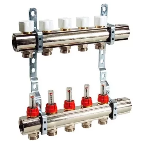 Колектор LUXOR з відсікачами і термоклапанами використовується у радіаторних системах опалення для змішування теплоносія з різних гілок та розподілу по ним. Розподільчий колектор складається: з зворотного колектора з вбудованими вентилями із захисними ковпачками (дають можливість автоматично регулювати потік теплоносія при встановленні на них термоелектричних головок), з колектора подачі з вбудованими клапанами подвійного регулювання, з кронштейнів для кріплення колекторної групи на стіну. Колекторні балки виготовлені з нержавіючої сталі високої якості, яка витримує температуру 120 °С і тиск до 10 бар. Пристрій має 5 виходів, для підключення контурів опалення. Міжосьова відстань становить 50 мм.