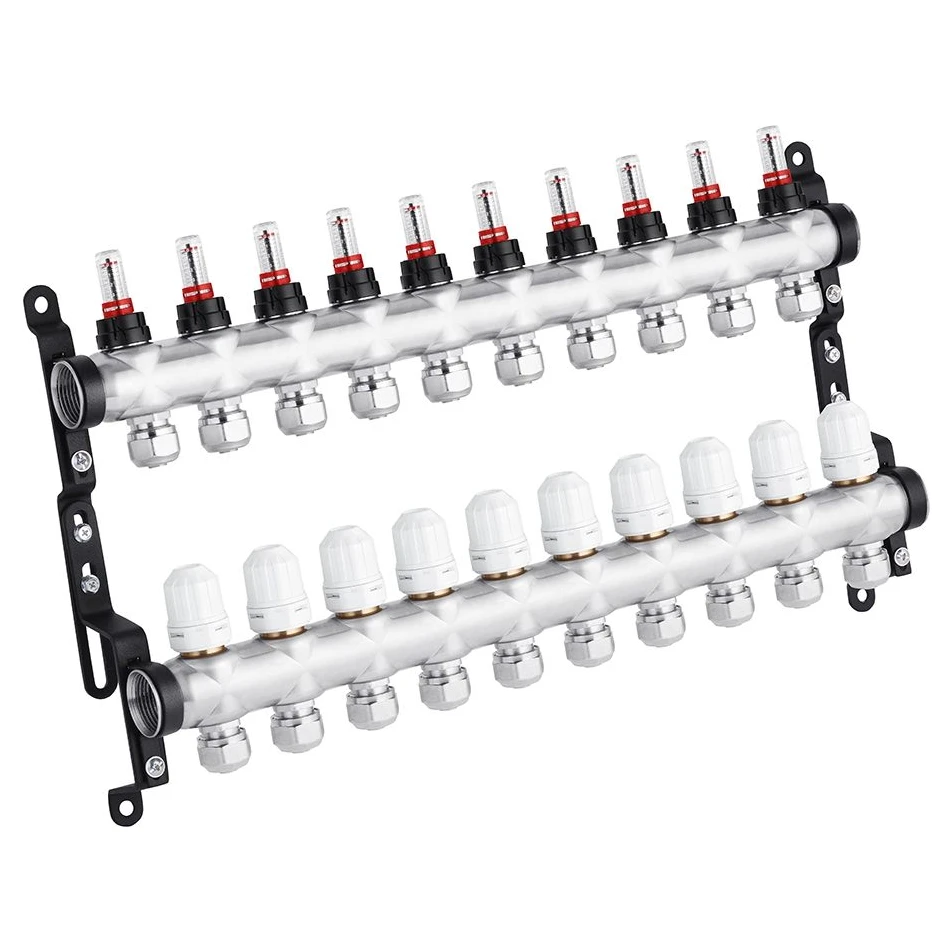 Колектор нержавіючий STA G1" х10 (В/Т) з витратоміром, клапаном та євроконусами Classic