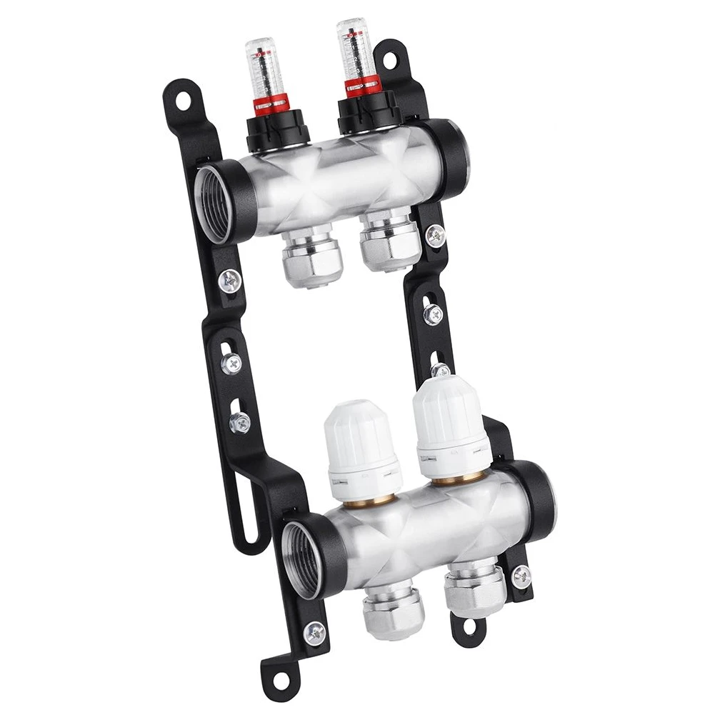 Колектор нержавіючий STA G1" х2 (В/Т) з витратоміром, клапаном та євроконусами Classic