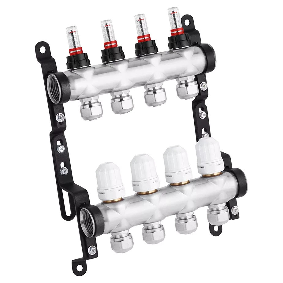 Колектор нержавіючий STA G1" х4 (В/Т) з витратоміром, клапаном та євроконусами Classic