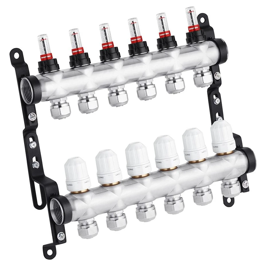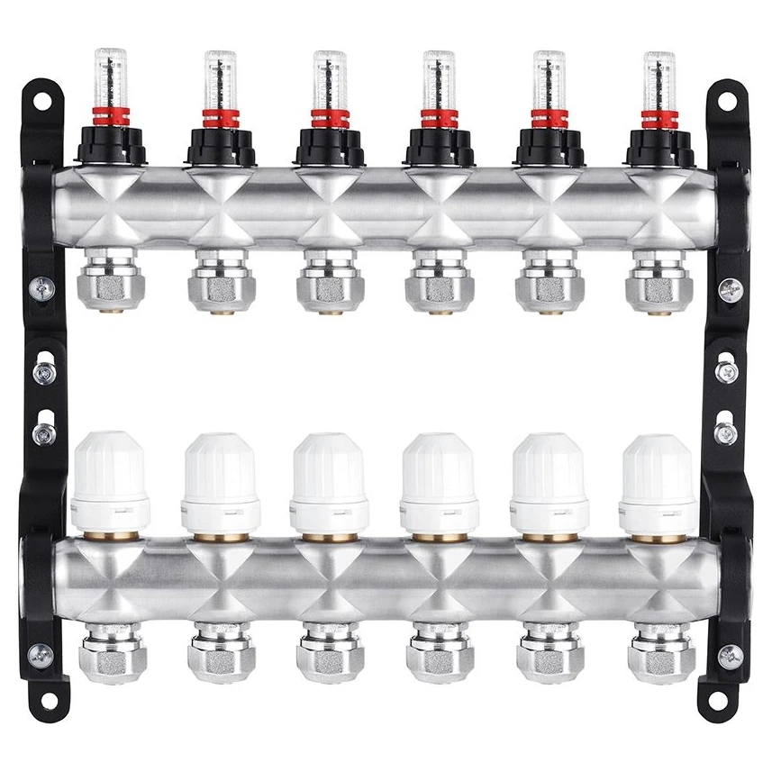 Колектор нержавіючий STA G1" х6 (В/Т) з витратоміром, клапаном та євроконусами Classic