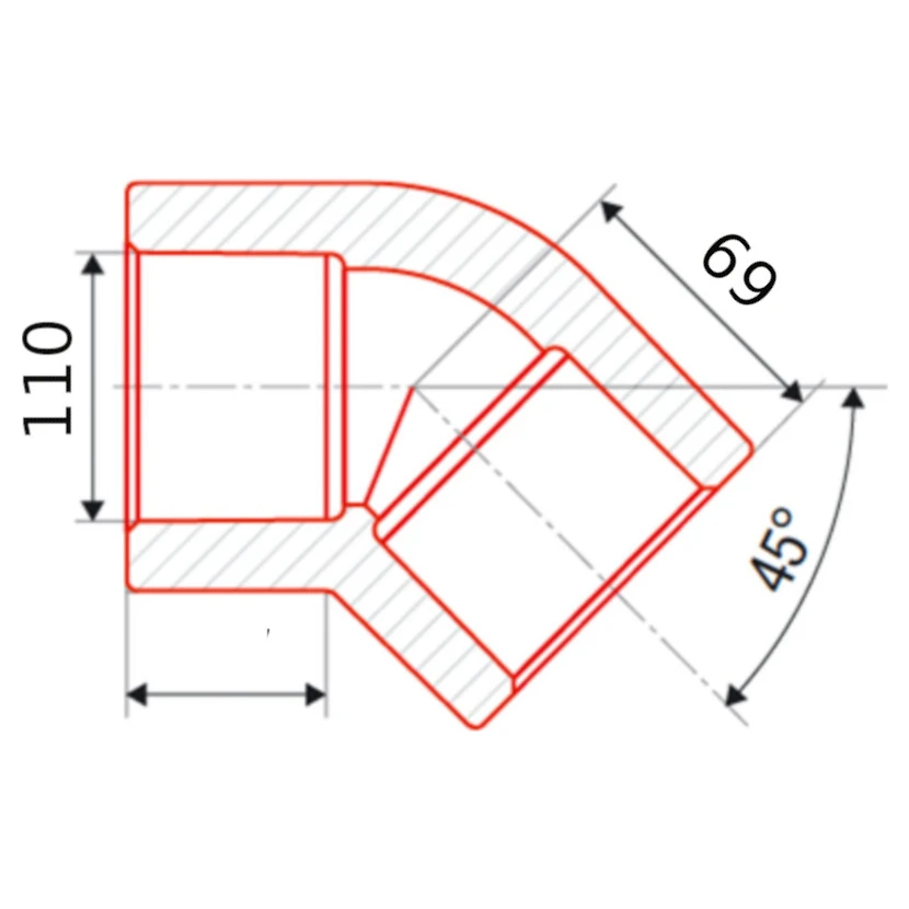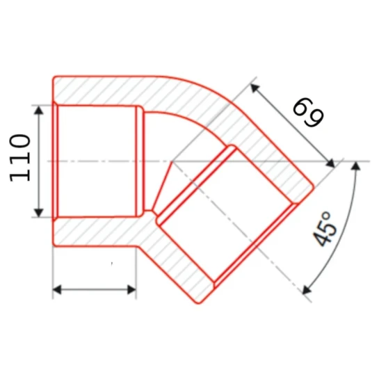 Коліно ASG-Plast 110х45° – це надійний фітинг який використовується в системах водопостачання та опалення. Допомагає міцно з'єднувати поліпропіленові труби під кутом 45°. Діаметр труб, що з'єднуються – 110 мм. Цей виріб виготовлений із міцного поліпропілену і може бути встановлений як для в системах холодного, так і гарячого водопостачання та опалення. Матеріал екологічно чистий, нешкідливий для здоров'я. Тип з’єднання — поліфузне зварювання.
