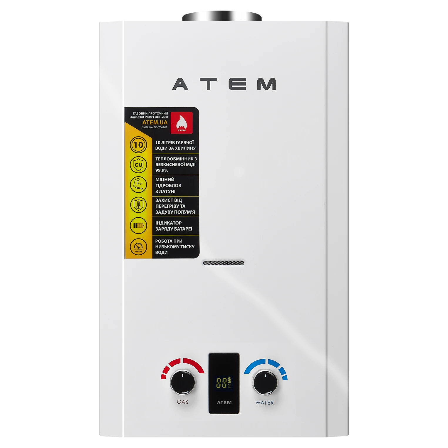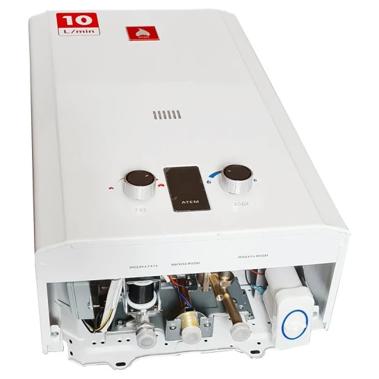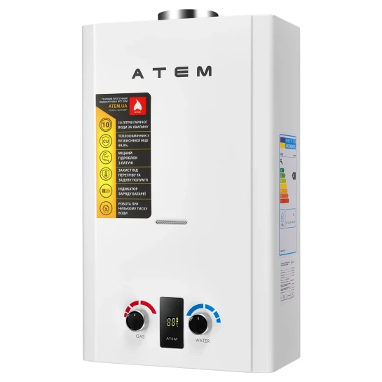Виробник: АТЕМ ВПГ-20М Колонка газова (бiла) Тип: Водонагрівач газовий проточний Тип установки: настінний Спосіб монтажу: вертикальний Потужність: 18,8 кВт Висота: 56 см Ширина: 35 см Глибина: 14,5 см Колір: білий Вага: 10,8 кг Тиск води (min/max): 0,1/ 8 атм Витрати води: 9,4 л/хв Тип камери згоряння: закрита Витрати газу: 1,93 м3/год Керування: електронне Індикатори: цифровий дисплей Додатково: Контроль полум'я. захист від "сухого" горіння. Захист від високого тиску. Слідкування за відпрацьованими газами. Захист від замерзання. Захист від перегріву. Автоматичне електричне.