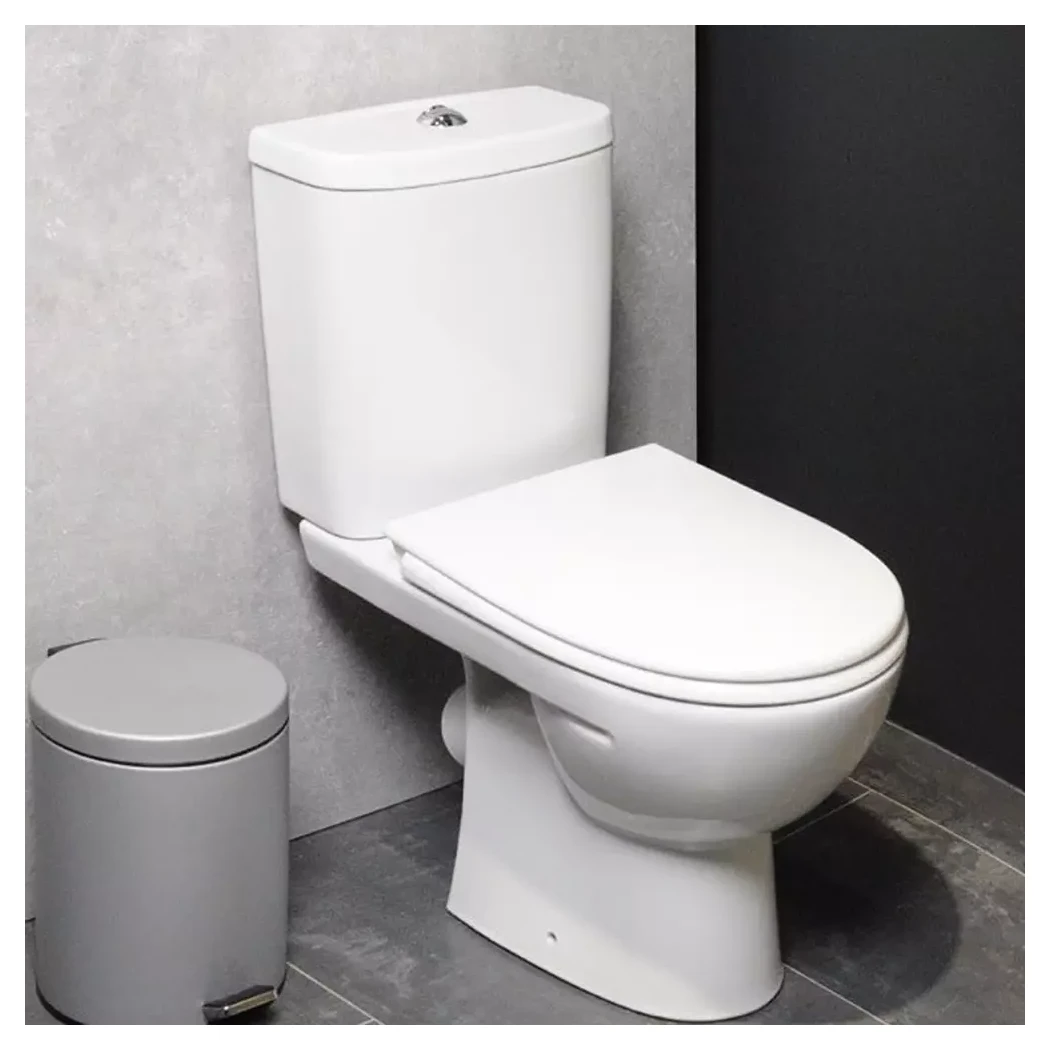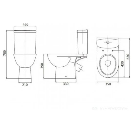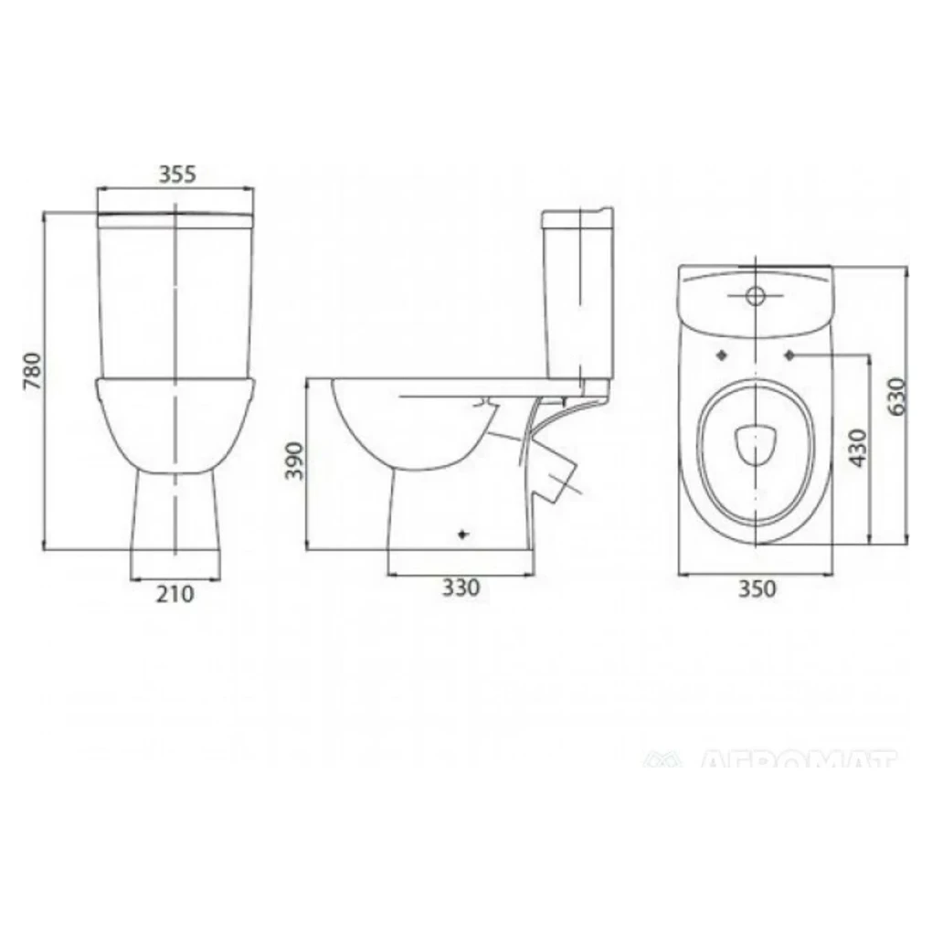 Якісний унітаз-компакт, виготовлений з сантехнічного фарфору. Гарантія на кераміку: 10 років. Гарантія на комплектуючі: 2 роки. Країна виробник: Україна. Компакт складається з: Надійний змивний механізм від швейцарської компанії Geberit. Унітаз з косим випуском. Зливний бачок 3/6 л, з нижнім підводом води. Ергономічне сидіння з кришкою з посиленного поліпропілену та надійними металевими кріпленнями