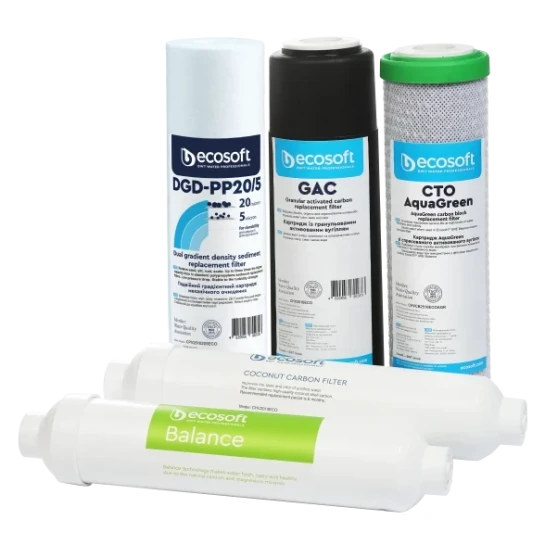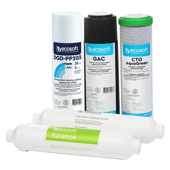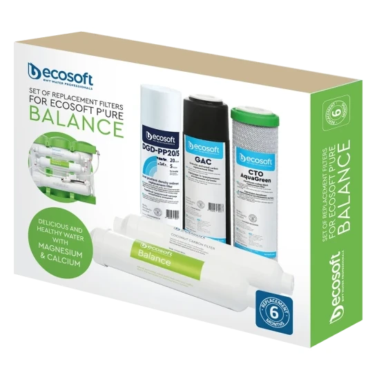 Комплект картриджів ECOSOFT PURE Balance "6 міс" – це набір змінних фільтруючих елементів, розроблений для забезпечення якісного очищення питної води протягом шести місяців. Він призначений для використання в системах зворотного осмосу ECOSOFT PURE Balance, гарантуючи ефективне видалення забруднень та покращення смаку води.