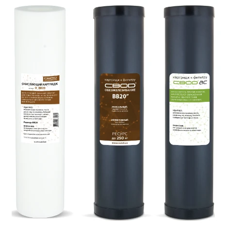 Комплект картриджів SVOD 3_OFS_BB20 – це професійне рішення для комплексного очищення води, спеціально розроблене для регіонів з підвищеним вмістом заліза. Ця триступенева система забезпечує ефективне видалення заліза, механічних домішок та надійний захист побутової техніки від накипу.