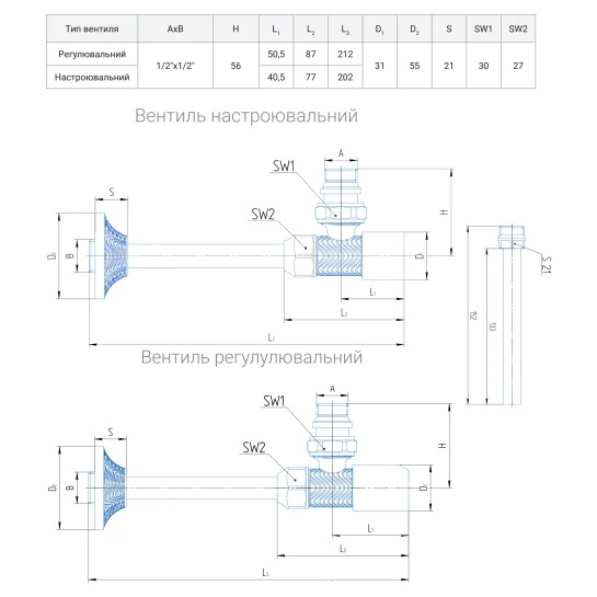 Комплект радіаторних вентилів ручного регулювання з подовжувальними трубками, MIRAYA LOTUS. Комплект вентилів застосовується для зміни витрат рідини за допомогою ручного регулювання опалювальних приладів систем опалення. Виріб може застосовуватися як в однотрубних, так і в двотрубних системах опалення, а також для перекриття теплоносія. Спільне використання регулювального та настроювального (балансувального) вентилів дозволяє налаштовувати (балансувати) опалювальний прилад, за рахунок регулювання витрати зворотного потоку теплоносія.