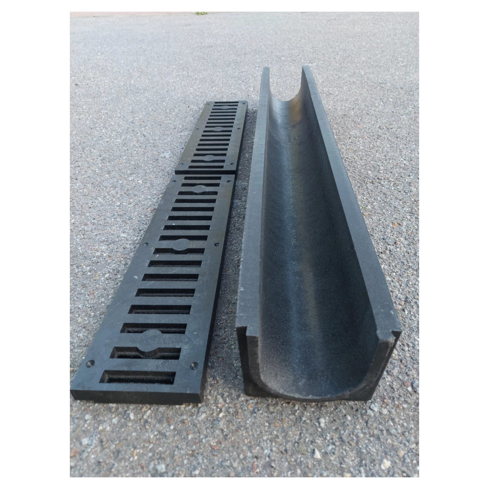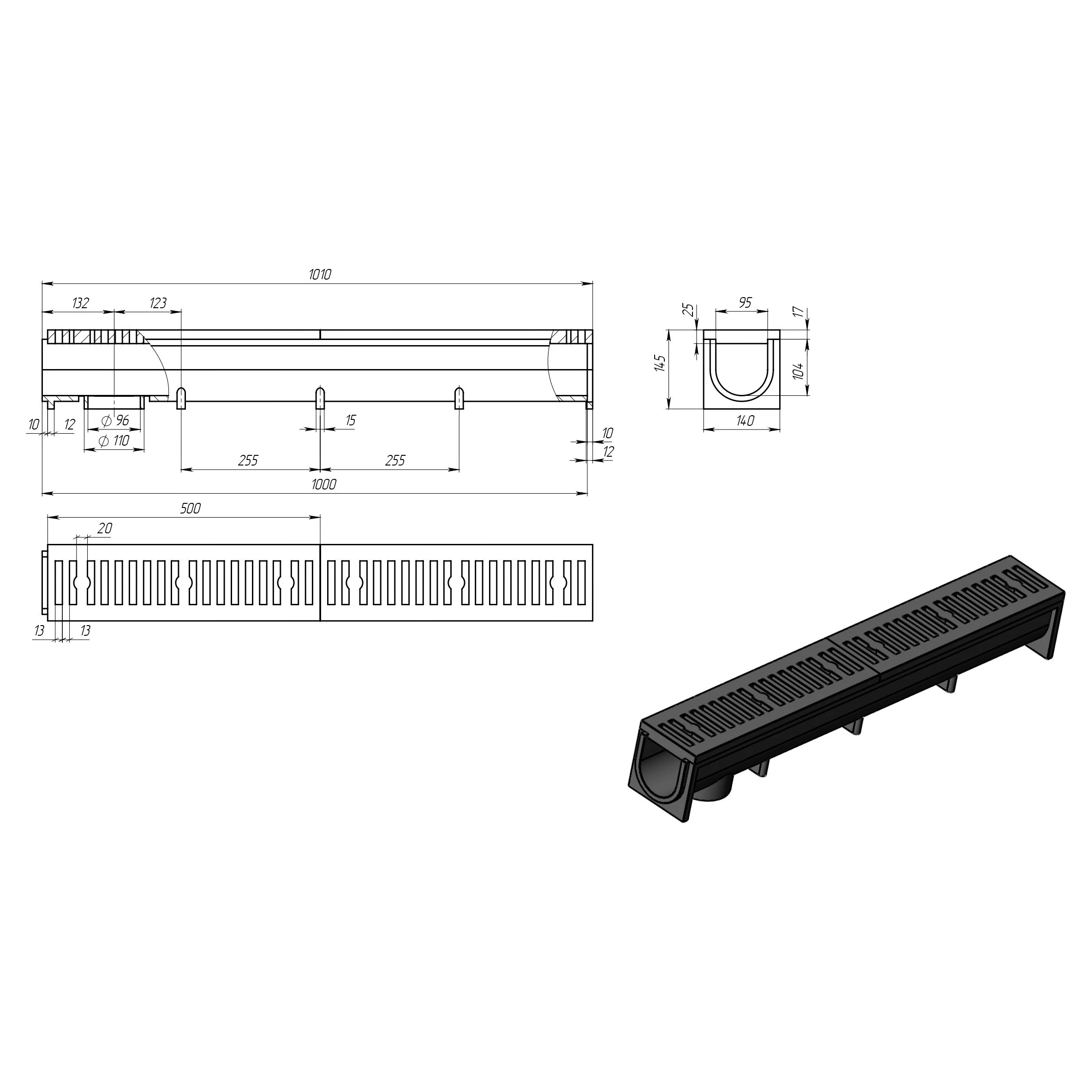 Комплект водовідводу Україна глибокий 1000х140х145 мм (А15) з чорними решітками