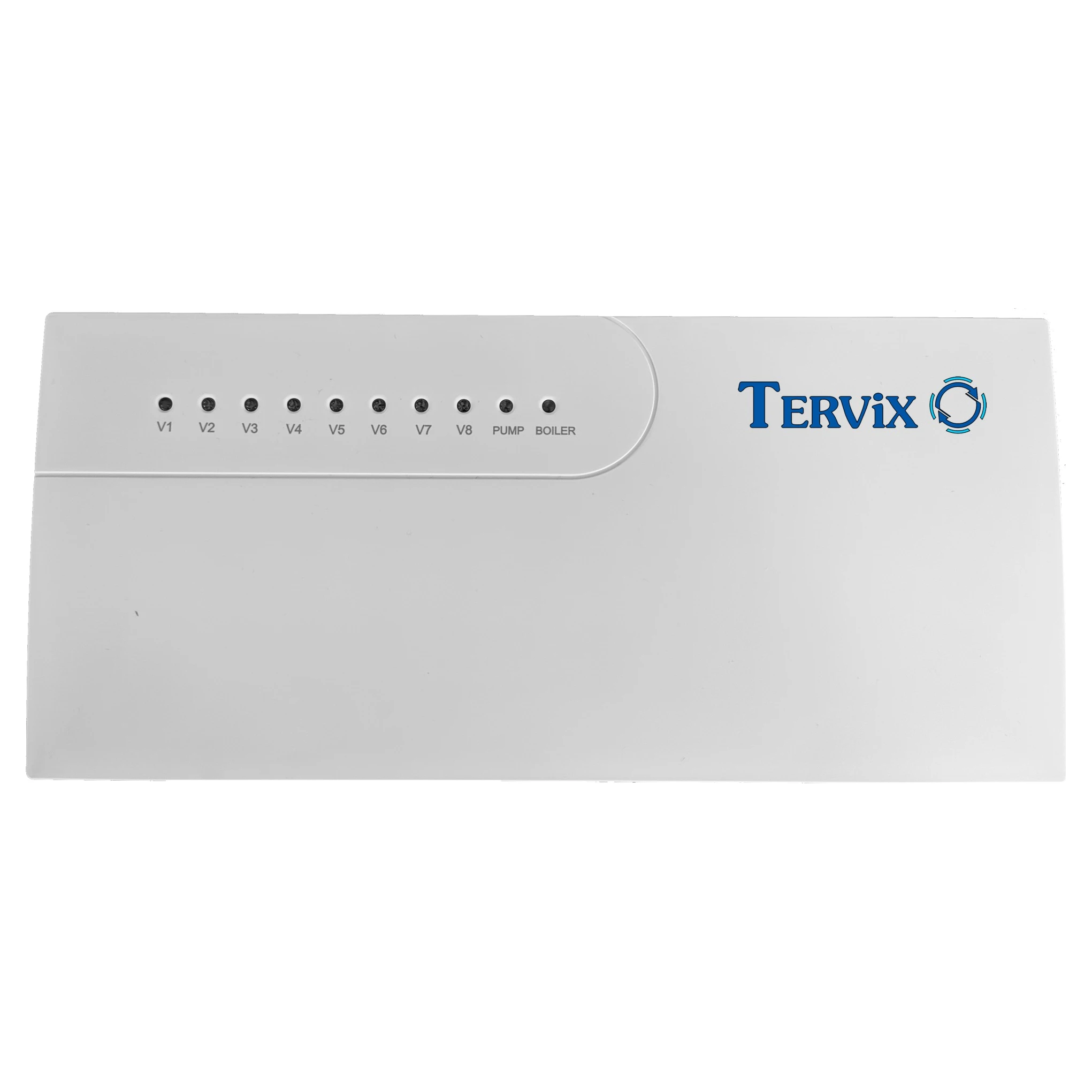 Контролер Tervix Pro Line С8 управляє термоприводами, встановленими на розподільчу гребінку теплої підлоги, а також має можливість вимкнути котел і циркуляційний насос, коли вимкнені всі обігрівальні контури. Контролер для водяної теплої підлоги Tervix Pro Line С8 призначений для управління системою водяного підлогового опалення максимум на 8 контурів. Працює з кімнатними термостатами з WiFi управлінням Tervix Pro Line WiFi Thermostat і термоприводами Tervix Pro Line Egg нормально закритими (NC) при напрузі 230В. Має можливість вмикати / вимикати котел та циркуляційний насос в залежності від того, чи є запит на отримання тепла.