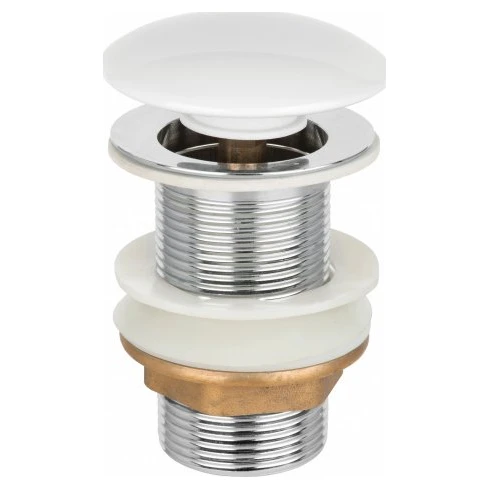 Пробка для раковини КЛІК-КЛАК, біла, глянцева без переливу INVENA (SC-B1-BBP) Характеристики: Тип: Донний клапан Відкриття/перекриття зливних отворів: Автоматичний (click-clack) Діаметр під'єднання: 1 1/4" Колір: Білий