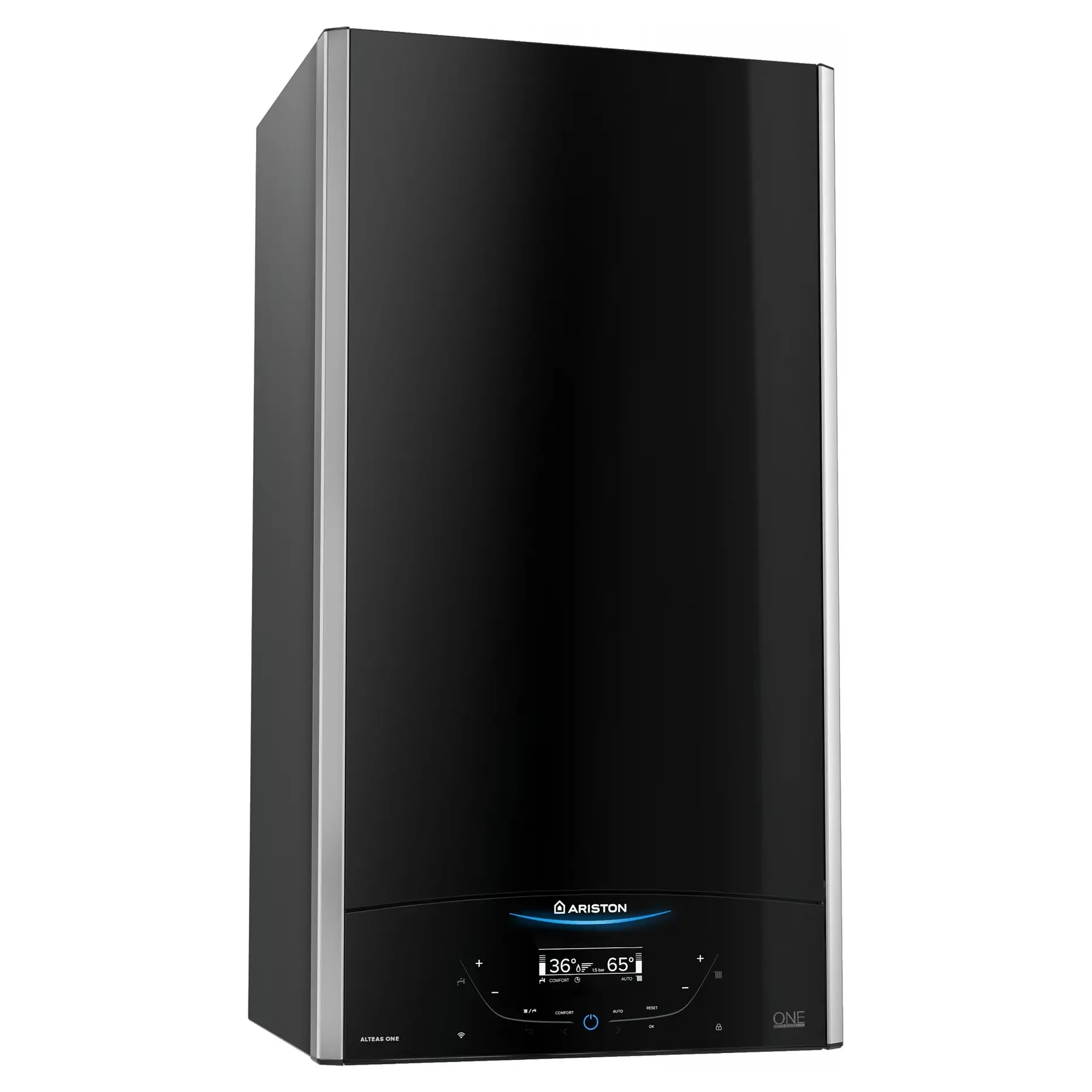 Котел газовий ARISTON ALTEAS ONE+ NET24 конденсаційний (3301113) Характеристики: Споживання: 82 Вт Макс./мін. теп. потужність: 24.4/2.9 кВт Макс./мін. теп. потужність ГВП: 28.9/2.9 кВт Опалення. Температура води в контурі опалення: 35-82 °С Об'єм розшир. бака: 8 л. ГВП: температура води у контурі: 36-60 °С Газ: 2,75 м.куб/годину. Витрата води в контурі ГВП: ∆Т=25 °С 15.4 л/хв ∆Т=35 °С 11 л/хв ВШГ: 745*400*319 Вага: 32 кг Alteas One+ Net 24 - настінний конденсаційний двоконтурний газовий котел з примусовою тягою та камерою згоряння закритого типу, призначений для опалення та забезпечення ГВП приватних будинків, котеджів, заміських будинків, дач. Котел оснащений ексклюзивним теплообмінником зі збільшеним перерізом труб, вуличним та кімнатним датчиком температури, модулем Wi-Fi та великим сенсорним дисплеєм. Вбудоване процесорне керування підтримує функцію програматора, що дозволяє заздалегідь налаштувати тижневий графік роботи системи опалення. Котел відрізняються сучасним унікальним дизайном та якістю.