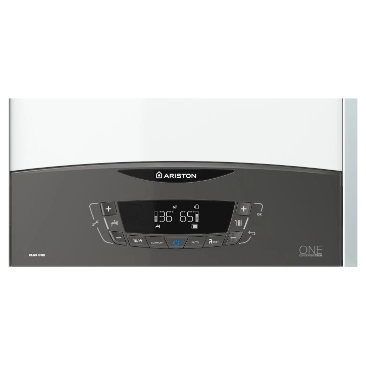 ARISTON CLAS ONE 30 конденсаційний (3301022) — це якісний і надійний конденсаційний газовий котел для системи опалення та ГВП. Такий прилад стане відмінним вибором для забезпечення комфортного теплопостачання для приміщення площею в 195 кв.м. Компактні розміри агрегата дозволяють легко знайти місце для його встановлення. Просте і зрозуміле електронне управління дозволяє встановити температурний режим в діапазоні 35-82 °C, при цьому температура буде відображатися на дисплеї. Котел оснащений захистом від замерзання і порушення циркуляції теплоносія, циркуляційним насосом.