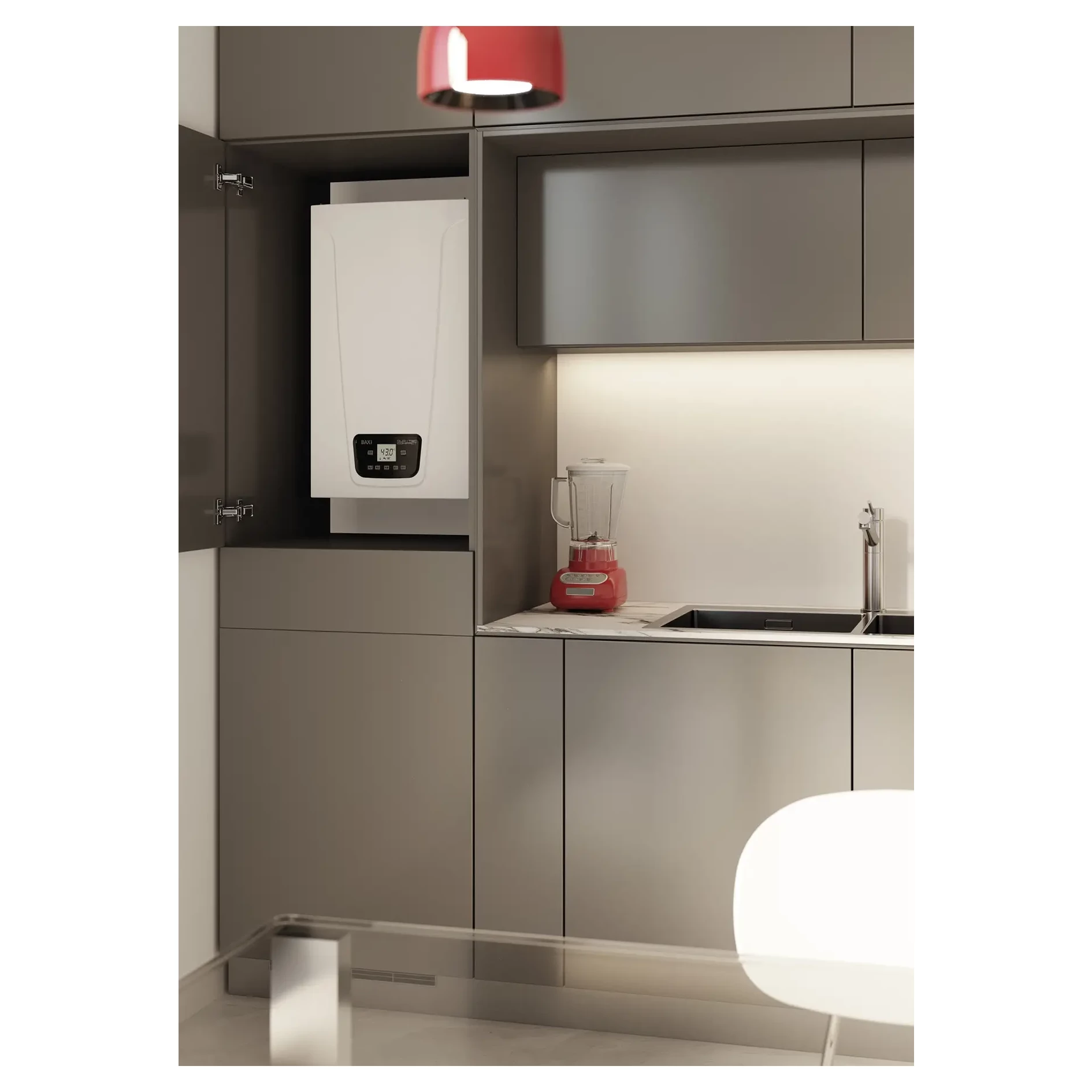 Котел газовий BAXI DUO-TEC COMPACT E 1,24 конденсаційний (A7722080) Характеристики: Джерело енергії газ Розміщення настінний Тип одноконтурний (тільки опалення), Конденсаційний Площа опалення 180 м² Габарити (ВхШхГ): 700x400x299 мм Вага: 34 кг Мін. потужність 3.5 кВт Корисна потужність 24.7 кВт Споживана потужність 102 Вт (Живлення 220 В) Мін. t теплоносія: +25 °С Макс. t теплоносія: +80 °С Макс. тиск у контурі опалення 3 бар Датчик зовнішньої t Циркуляційний насос Режим «теплі підлоги» ККД 105.7 % / при 30/50 °C Камера згоряння закрита (турбований) Діаметр димохода 60/100 мм / 80/80 для роздільного / Номінальний тиск газу на вході 20 мбар Макс. витрати газу: 2.61 м³/год Місткість розширювального бака: 7 л Тиск розширювального бака 0.8 бар Теплообмінник з нержавіючої сталі Безпека - Системи захисту: перегрів води відсутність тяги згасання полум'я падіння тиску газу порушення циркуляції води замерзання рідини у контурі