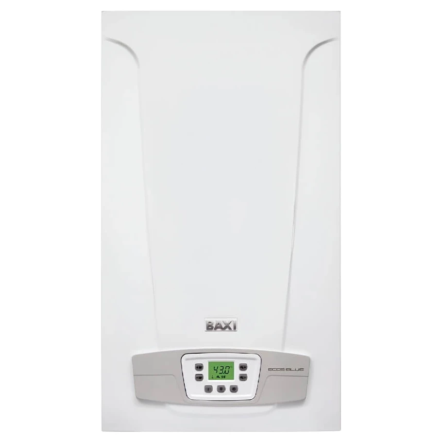 Baxi ECO5 BLUE 24 — це сучасний настінний газовий котел п’ятого покоління з відкритою камерою згоряння (димохідний тип B11BS), призначений для ефективного опалення та приготування гарячої води. Модель поєднує компактні розміри, високу продуктивність та низький рівень викидів NOx (клас 6 відповідно до ДСТУ EN 15502). Котел оснащений двома роздільними теплообмінниками: основним для опалення та пластинчастим з нержавіючої сталі для ГВП, що забезпечує стабільну температуру та комфортне користування гарячою водою. Турбінний датчик протоку (витратомір) підвищує точність роботи контуру ГВП. Зручна цифрова панель управління з широким LCD-дисплеєм дозволяє легко контролювати всі параметри роботи.