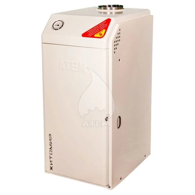 Котел газовий Житомир-3 КС-Г-025СНВ димохідний (димохід догори) Категорія: Газові котли Номінальна потужність: 26 кВт. Отоплювана площа: 260 м² ККД: 94% Об'єм води в котлі: 25 л. Номінальна витрата газу: 2,77 м³/годин Відведення продуктів згоряння: природний. Кількість контурів: один. Матеріал теплообмінника: сталь. Тип установки: підлоговий Тип розпалювання: п'єзо Діаметр димоходу: 126 мм. Розміри (ВхШхГ): 860х380х535 мм Вага: 77 кг. Виробник: АТЕМ Країна виробник: Україна. Гарантія: 6 років.