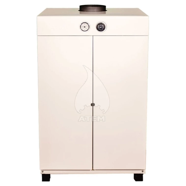 Котел газовий Житомир-3 КС-Г-045СНВ димохідний (димохід догори) Категорія: Газові котли Номінальна потужність: 40 кВт. Отоплювана площа: 400 м² ККД: 94% Об'єм води в котлі: 60 л. Номінальна витрата газу: 4,27 м³/годин Відведення продуктів згоряння: природний. Кількість контурів: один. Матеріал теплообмінника: сталь. Тип установки: підлоговий Тип розпалювання: п'єзо Діаметр димоходу: 178 мм. Розміри (ВхШхГ): 920х680х545 мм Вага: 130 кг. Виробник: АТЕМ Країна виробник: Україна. Гарантія: 6 років.