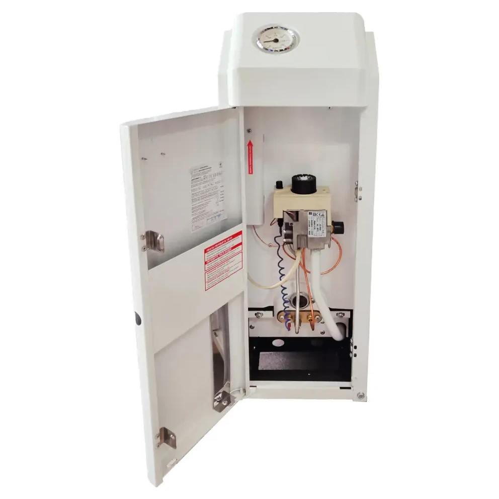 Котел газовий Житомир - 3 КС-ГВ-012СН 12 кВт димохідний ВИРОБНИК: Атем Житомир ТИП КОТЛА: Газовий ОПАЛЮВАНА ПЛОЩА: до 125 кв.м ПОТУЖНІСТЬ: 12,5 кВт МАКСИМАЛЬНА ВИТРАТА ПАЛИВА: 1,33 м3/год КІЛЬКІСТЬ КОНТУРІВ: Двоконтурний ПРОДУКТИВНІСТЬ ГВП (ГАРЯЧЕ ВОДОСНАБЖЕННЯ): 4,7 л/хв МАТЕРІАЛ ТЕПЛООБМІННИКА: Сталевий, алітований Al+ ГАБАРИТНІ РОЗМІРИ, (ВХШХГ): 800х230х500 мм ВАГА- 54 кг ОСНАЩЕННЯ ТА ФУНКЦІОНАЛЬНІСТЬ: Алітоване покриття топки та нижньої частини теплообмінника - БІМЕТАЛ, автоматика euroSIT 630 (Італія), п'єзорозпал ЕЛЕКТРОРЕЗЕРВ: можливість додатково встановити блок ТЕНів для резервного опалення від електромережі 220В