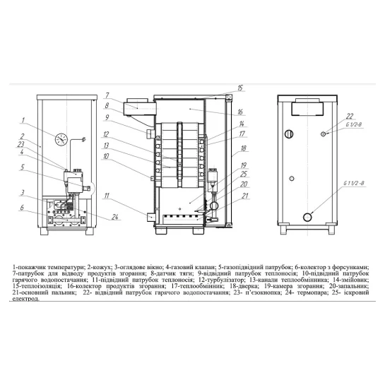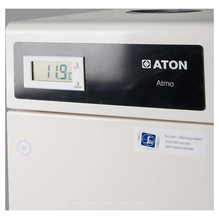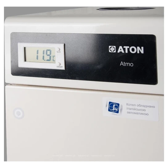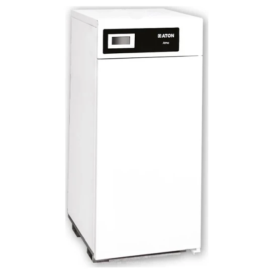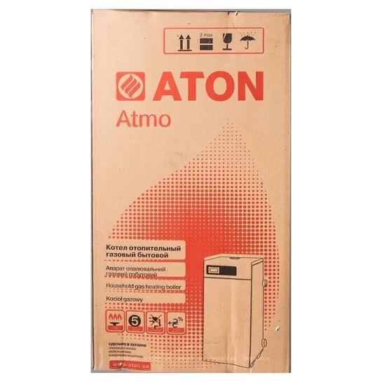 Підлогові димохідні газові ATON Atmo 50 Х потужністю 50 кВт -потужний теплогенератор з відкритою камерою згоряння (природним шляхом видалення продуктів горіння). Прилади призначені для побутового опалення та комфортного постачання гарячою водою (при відповідній двоконтурній модифікації). Котел призначений для обігріву індивідуального житлового будинку, а також будинків комунального та іншого призначення. Переваги: -Простий монтаж при заміні застарілого котла на вдосконалений без зміни конфігурації існуючої обв'язки. -Котли призначені для роботи на природному газі і можуть експлуатуватися при паралельному підключенні в єдину опалювальну систему; -Не вимагають зовнішнього джерела живлення; -Можливий варіант виконання з функціями опалення та гарячого водопостачання.