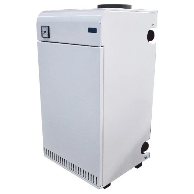 Котел газовий КОРДІ Вулкан 20 кВт димохідний (АОГВ-20 М) Газовий котел 20 кіловат - популярний серед споживачів, так само як і котел на 7 кіловат. Відрізняється від попередника більшою площею прогрівання приміщень. Одноконтурний димохідний котел Вулкан 20 кВт. Габаритні розміри (ГШВ): 460*380*785 мм. Підлоговий котел ККД: 92%. Технічні характеристики: ККД котла: 90% Матеріал теплообмінника: сталь Витрата газу за годину, не більше: 2,34 м3 Об'єм води в котлі: 26,3 л Діапазон регулювання температури теплоносія: +50... +90 С. Вага котла: 58 кг. Приєднувальні розміри G 2
