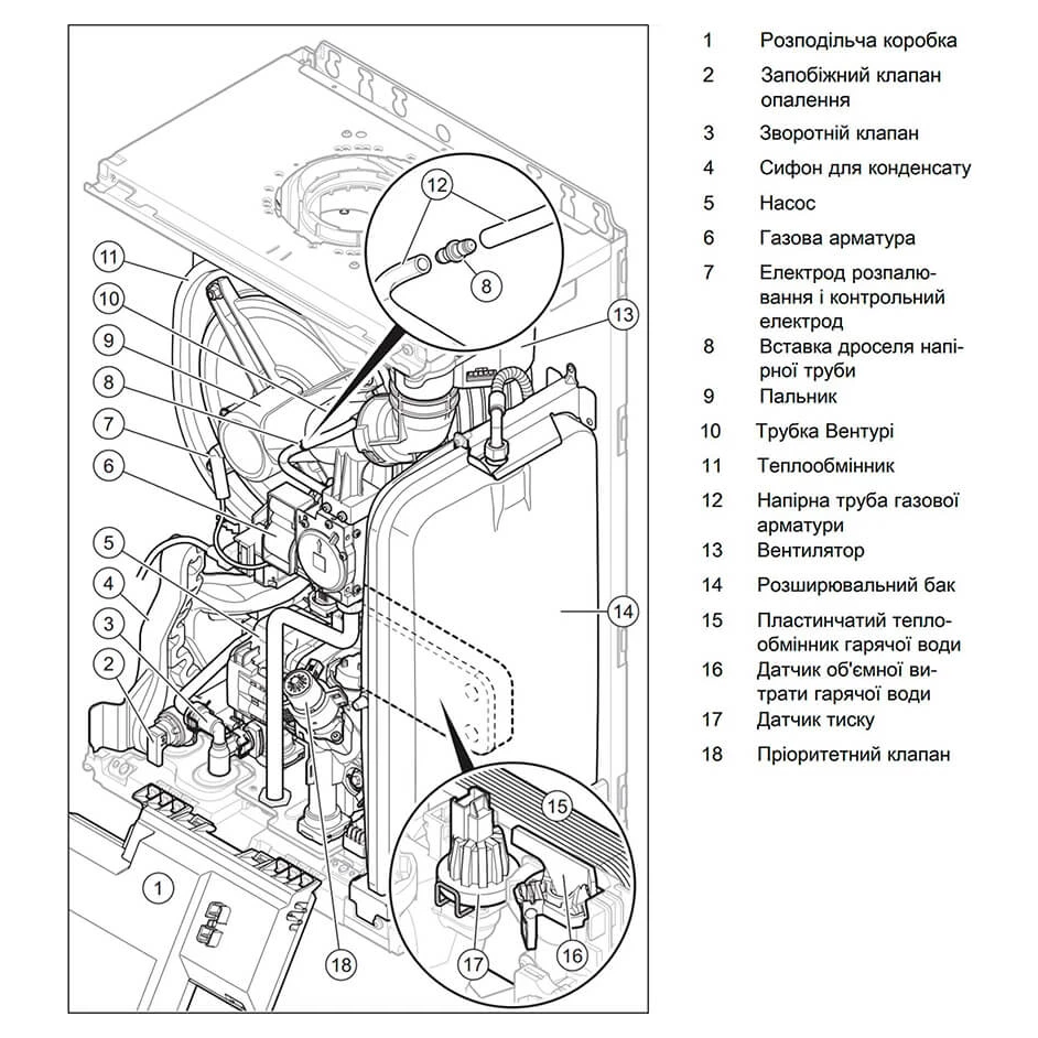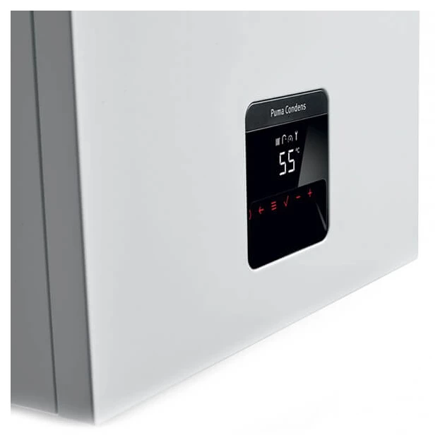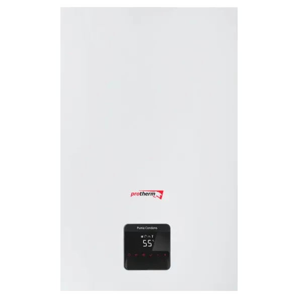 Високоефективний двоконтурний газовий котел Protherm Puma Condens 24/28 MKV-AS/1 , за рахунок використання конденсації, яка дозволяє зробити обігрів приміщення і гаряче водопостачання ще більш економічним і комфортним. Котел укомплектований турбованим відводом продуктів згоряння, а також закритою камерою згоряння. Дані роботи котла відображаються на рідкокристалічному дисплеї. Котел оснащений системою самодіагностики, яка виводить помилки на екран у вигляді коду. Додатково в даному котлі є розширювальний бак на 8 літрів, автоматичним клапаном виходу повітря і спеціальним краном підживлення. Середній коефіцієнт корисної дії роботи котла становить 107.8%.