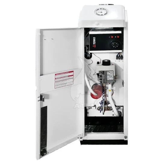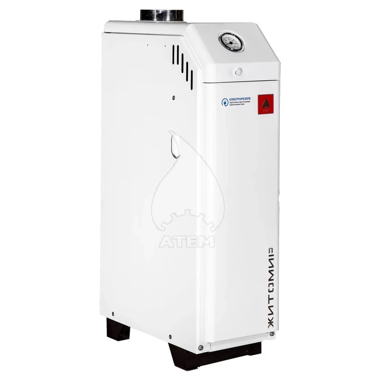 АТЕМ Житомир-3 КС-Г-012 СНВ / КЕ-4,5 – комбінований електро-газовий підлоговий димохідний котел. Автоматика безпеки з газовим клапаном 630 EUROSIT (Італія). В котлі встановлений ТЕН потужністю 4,5 кВт та блок керування з підключенням до мережі 220 В. За допомогою блока керування ви маєте змогу вмикати ТЕН ступінчасто по 1,5 кВт, а також задавати необхідну температуру роботи котла в електричному режимі.