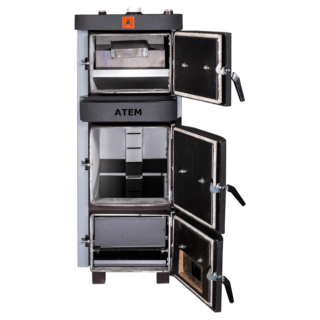 Котел твердопаливний Житомир-14М водогрійний Опис: Твердопаливний котел 1-контурний Паливо: вугілля (8 годин), дрова (6 годин) Підлоговий димохідний Потужність: 12 кВт Опалювана площа: до 120 м2 Чавунні колосники Виробник: ATEM Твердопаливні котли Житомир - надійні пристрої для опалення приміщень, адаптовані для роботи у складних умовах. Завдяки конструкції круглої форми котел здатний витримувати підвищений тиск у непередбачених ситуаціях. Теплообмінник котлів Житомир побудований таким чином, що сажа значно менше відкладається на стінках котла, що сприяє безперебійній роботі котла тривалий період і навіть на якісному паливі (сирі дрова і т.і.) Максимальна температура на виході з котла, не більше +90 С Габаритні розміри котла (ВхШхД): 1250х460х640 мм. Габаритні розміри топки (ВхШхД): 690х380х380 мм. Вода: 16 л. Вага: 99 кг.