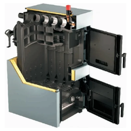 Чавунний твердопаливний котел Caldera Solitherm ST 3S 15-17 кВТ призначений для опалення приватних будинків та невеликих виробничих приміщень площею до 170 кв. м. Глибина топки (довжина дров): 220 мм. Опалювана площа: 170 м. кв.Приєднувальні патрубки: 1 1/2" ДУ40 дюйма. Теплообмінник котла Caldera Solitherm виготовлений із сірого чавуну з підвищеною еластичністю, що дає високу стійкість до корозії. Котел може бути використаний у системах опалення як із природною, так і примусовою циркуляцією теплоносія.