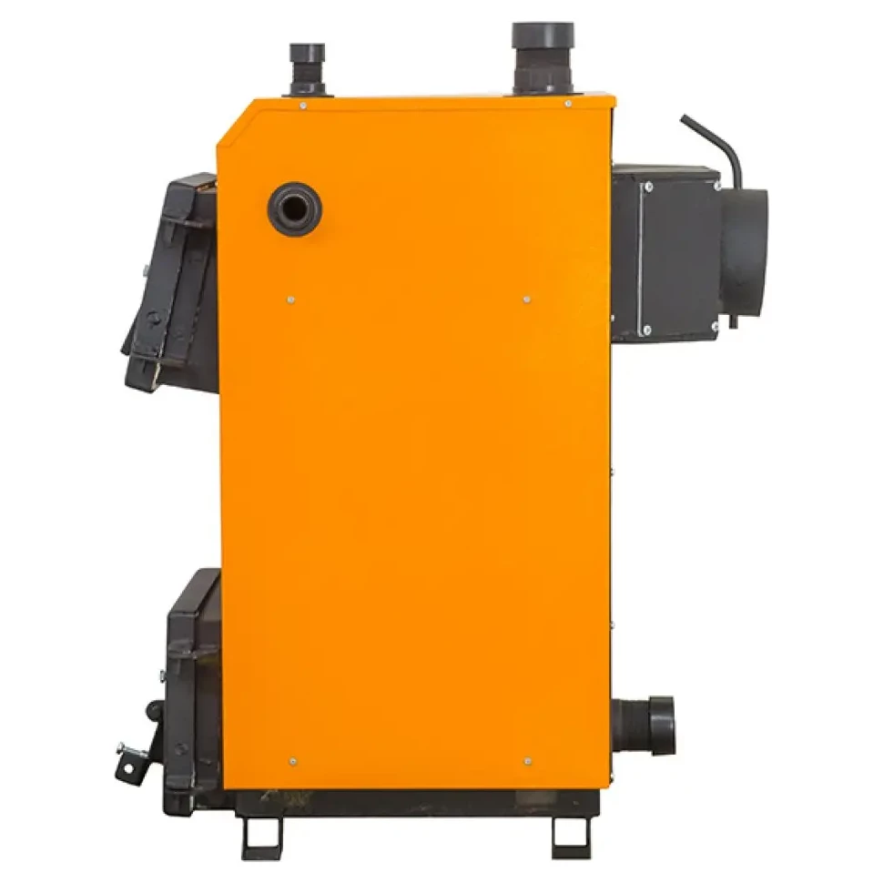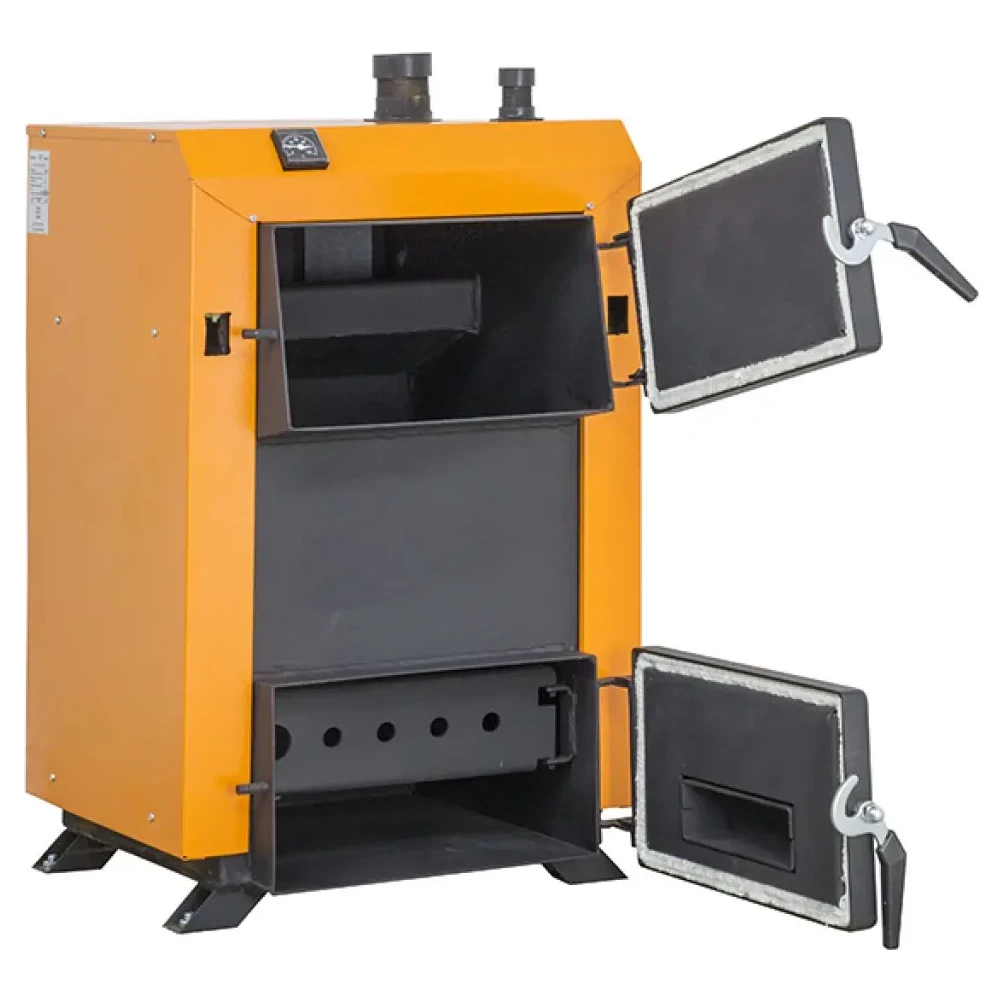 Твердопаливний котел серії Standart — це сталевий твердопаливний котел з поличним теплообмінником із наповненними водою колосниками. Котел працює на будь-якому типі твердого палива (вугілля, дрова, брикет, торф і тощо) і завдяки своїй конструкції має високу ефективність (ККД 85%).Максимальна температура теплоносія: +95 °С. Об'єм теплообмінника: 40 л. Товщина металу теплообмінника: 4 мм. Завантажувальне вікно: 202/358 мм. Мінімально допустима висота димоходу складає 5 м.140515