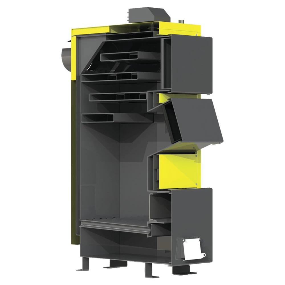 Котли цієї серії випускаються із «перекидним» димоходом, тобто. вихід димоходу може бути спрямований горизонтально чи вертикально. Вертикальний вихід димоходу значно розширює можливості установки, оскільки вимагає менше відстані до задньої стінки. Має багатоходовий теплообмінник (4 полиці) та об'ємну завантажувальну камеру. Котел з можливістю експлуатації із механічним регулятором тяги. Слід виділити кілька суттєвих переваг: жароміцна сталь, площа теплообмінника – 2,6 кв.м, завантажувальна горловина під кутом, велика топкова камера — 103 л, польська автоматика у комплекті, водонаповнені колосники, можливість спалювати паливо вологістю до 40%.