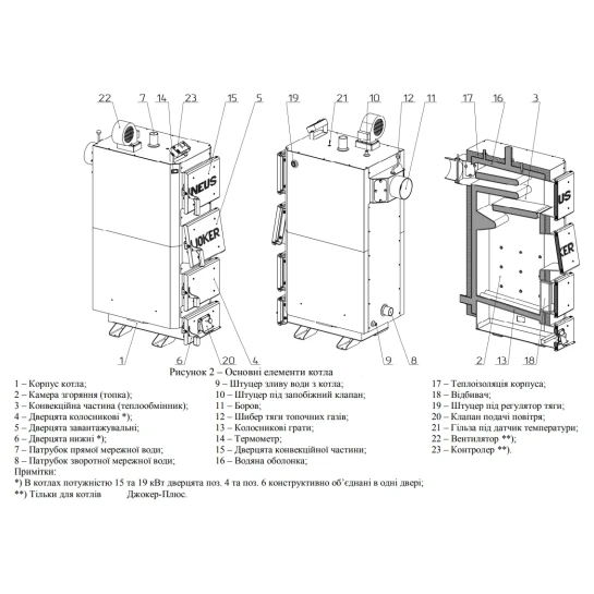 Котел тривалого горіння Neus Джокер - з електронною автоматикою Neus Joker (Джокер) - остання розробка заводу твердопаливних котлів Neus. Розроблена для опалення житлових, виробничих, комерційних, державних споруд, де є індивідуальна система опалення (примусова або гравітаційна). Вирізняється особливо великою площею тепловіддачі, за рахунок 3-х ходового теплообмінника. Робота на одному завантаженні палива 18-20 годин. Паливо можна використовувати з вологістю трохи більше 50%. Ідеально підходить для використання такого палива як дрова, брикети і вугілля різних фракцій. Переваги котла Neus Joker: - Товщина сталі теплообмінника – 6 мм; - Підвищений ККД – від 89 %; - Глибока та об'ємна топка; - Водонаповнена основа під колосниками; - Дуже ефективний теплообмінник; - Універсальний для використання палива; - Простота використання; - Гарантія – 3 роки.