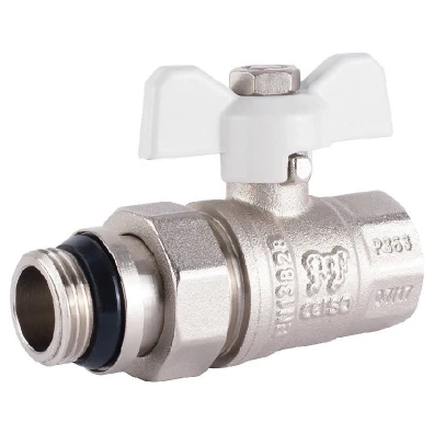 Кран кульовий 1" PROFACTOR з американкою з зовнішньою-внутрішньою різьбою та ущільненням обладнаний ручкою «метелик». Матеріал виготовлення: латунь CW614N. Кульові крани PROFactor арт. PF UBV 326 UR мають напівзгін спеціальної конструкції з упорним і ущільнювальним кільцями, що дозволяє обійтися без використання додаткових матеріалів для ущільнення при монтажі напівзгону на прилад або патрубок, що приєднується. Такі крани часто використовують у системах опалення для приєднання радіаторів.