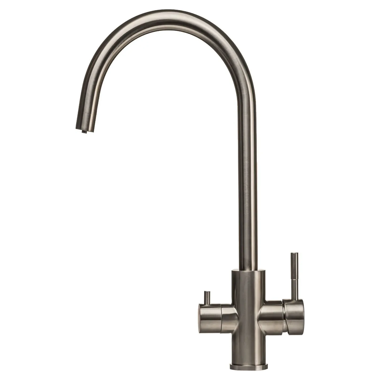 Globus Lux ALPEN SUS-0333-1 – це сучасний і функціональний змішувач для кухні, спеціально розроблений для використання з системами зворотного осмосу. Цей змішувач поєднує в собі стильний дизайн, високу якість та надійність. Змішувач має 3 контури для підключення води: - 1 і 2 використовується для підключення холодної та гарячої води. Змішування води відбувається за допомогою стандартного картриджа з маленьким руків'ям; - 3 контур використовується для підключення очищеної води. Відкриття чистої води здійснюється за допомогою іншого картриджа з великим руків'ям.